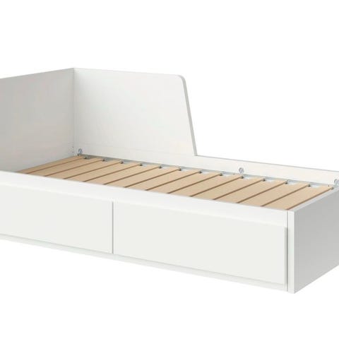 IKEA Daybed med oppbevaring i hvit farge. Sengen har integrerte skuffer under som gir ekstra lagringsplass. Passer for bruk i soverom eller gjesterom og kan fungere både som seng og sofa.
