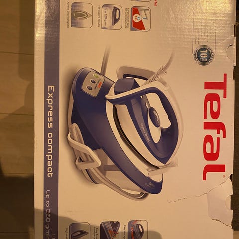 Tefal dampstrykejern i blå og hvit farge med justerbar temperaturkontroll og dampfunksjon. Utstyrt med en såle som gir jevn varmefordeling og effektiv stryking. Passer for daglig bruk på ulike tekstiltyper.