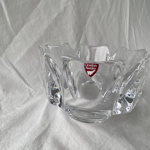 Holmegaard lysestake i elegant design glass med dekorative former som ligner blomster eller blader.
