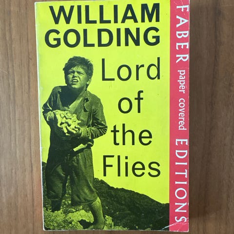 William Golding Lord of the Flies bok med rødt omslag. Inneholder originaltekst på engelsk. Passer for lesere som er interessert i klassisk litteratur.