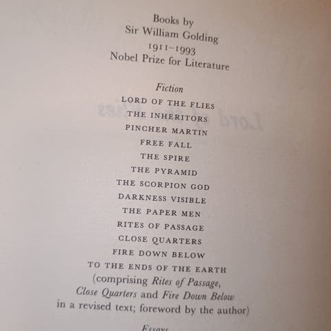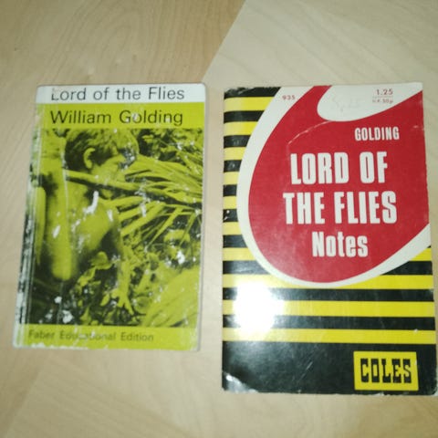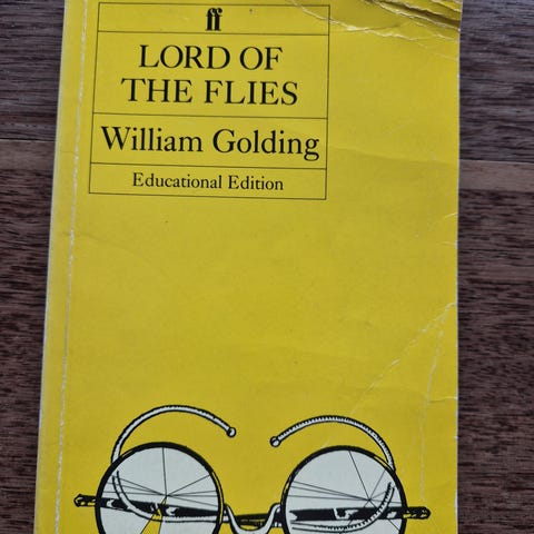 William Golding Lord of the Flies bok med rødt omslag. Inneholder originaltekst på engelsk. Passer for lesere som er interessert i klassisk litteratur.