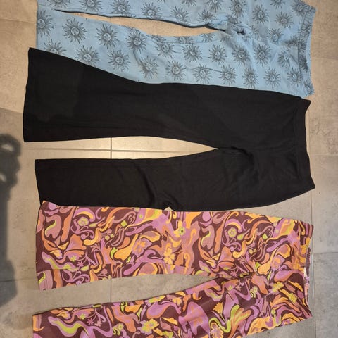 Svært lite og pent brukt av ett barn. Kun den ene buksen, som har medfølgende genser, er noe nuppete. Står øitt ulike størrelse på de men de er brukt samtidig og er alle tilsvarende 140. De 5 buksene pluss genser selges helst samlet for 400, men kan også dele opp. Cubus og H&M.