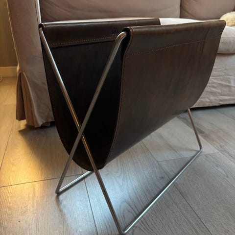 Praktisk «aviskurv» til oppbevaring av blader og aviser.