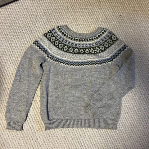 Selger helt ny strikket mariusgenser som dessverre er for liten til meg.