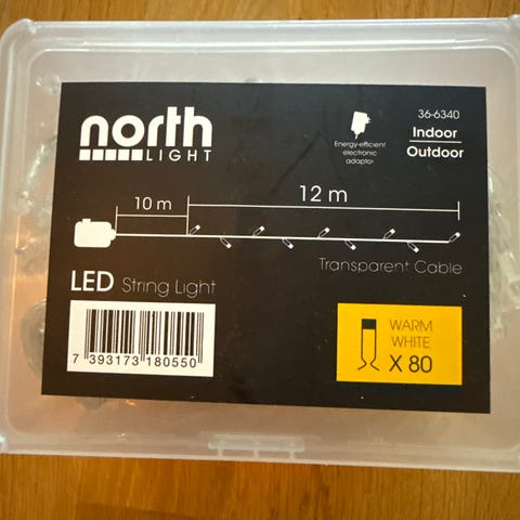 Selger to identiske lysslynger fra kvalitetsmerket North Light. Perfekt for å skape en koselig og varm atmosfære inne, eller for å lyse opp balkong, busker og inngangsparti ute.