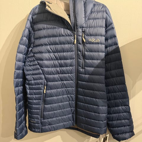 Pent brukt og nydelig vasket Rab Electron Pro dunjakke str M for herrer i pen blåfarge. Topp 800 fillpower dun som er impregnert. Varm jakke som ikke ruver. Litt dypere "cut" over bakenden. Pakkpose medfølger. Rab merket på venstre bryst løsnet dessverre under vask, og selges rimelig av den grunn