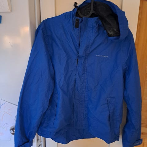 Fin overtrekksdress/regndress som passer både jenter og gutter. Noe skygger på den røde jakken men ellers i god stand uten skader. Et par små rift nederst på buksen, se bilde, men har ingen betydning for bruk.