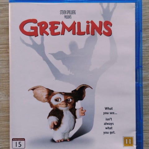GREMLINS (1984) UK UTGAVE Norsk tekst kjøper betaler frakt kan også hentes Hakadal. Klistremerke på kortsiden, kommer fra røyke hus