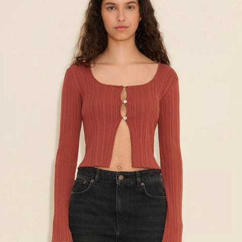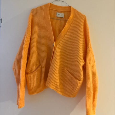 Nesten ikke brukt. Nydelig aprikos farge og virkelig behagelig strikk, men fargen kler meg desverre ikke helt.