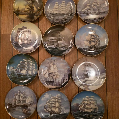 Civitan Club Hortens Platten dekorativ tallerken med en diameter på 18 cm. Laget av keramikk med svart-hvitt motiv som viser en havnsscene. Tallerkenen er en del av en samling og har informasjon om kunstner og produksjonsdetaljer på baksiden.