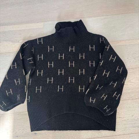 HÉST høyhalset genser i grå farge, størrelse XS for dame. Genseren har en høy hals og er laget for å gi varme og komfort.