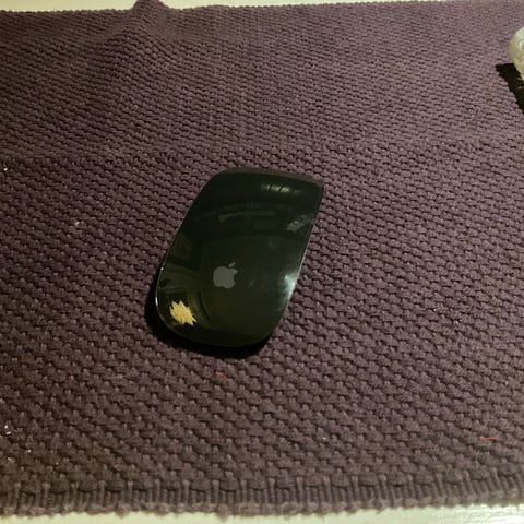 Apple Magic Mouse er en trådløs mus med hvit overflate og aluminium underside. Den har en minimalistisk design uten synlige knapper, og fungerer med multitouch-bevegelser. Musen drives av to AA-batterier som settes inn under en avtakbar aluminiumsdeksel på undersiden.