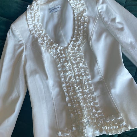Helt ny fin blazer fra Anoucha Tempel i str L. Nydelig ullkvalitet med silkebesetninger på krave, nedre del og ermer.