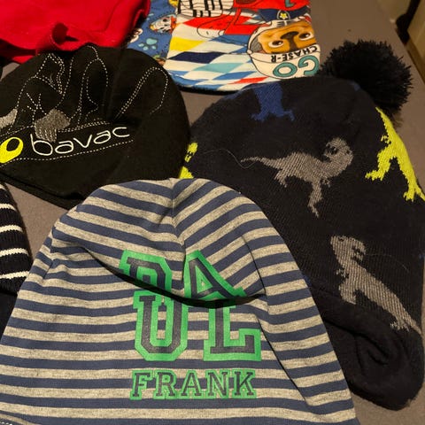 Pakke med diverse luer, et skjerf og votter (H&M, Lindex, Stormberg, Molo). Se bilder for merke og str. Selges samlet for 150.-