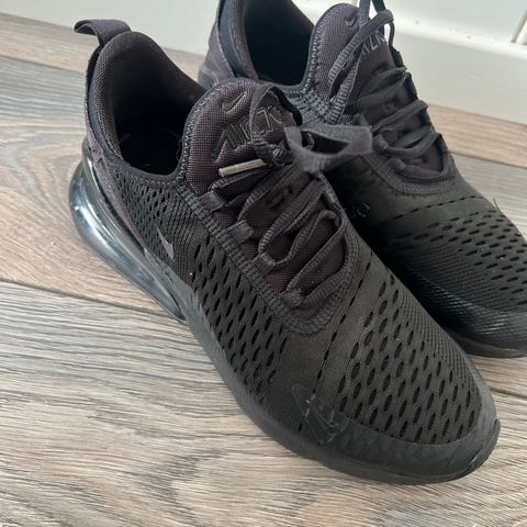 Nike Air Max 270 sneakers i svart farge, størrelse 38. Skoene har en mesh-overdel for god ventilasjon og en synlig Air Max-enhet i hælen for demping. Passer til ulike aktiviteter innen sportstype Annet.