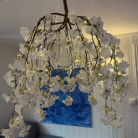Vakker italiensk vegglampe med wisteria blomster i lakkert metall.