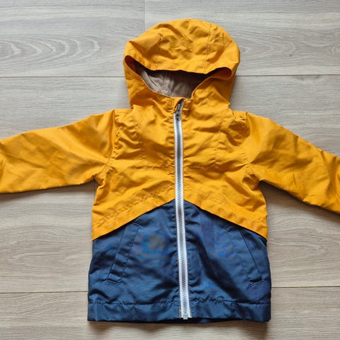 Name it barnejakke i størrelse 80. Jakken er blå med mønster av figurer og har hette. Hel og pen, men noen nupper i foret etter vask. Kommer fra et røyk- og dyrefritt hjem.