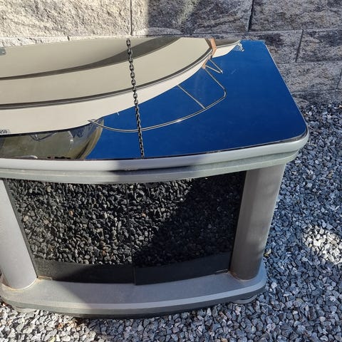 Pent brukt TV bord på hjul. Vridbar topplate i glass.