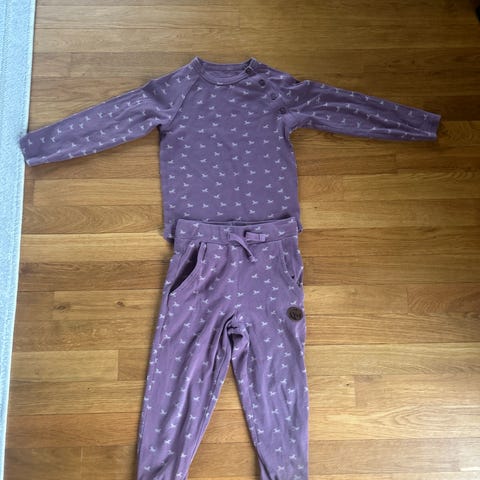 Brukt av et barn. Har hatt et hull på kne. Sydd sammen