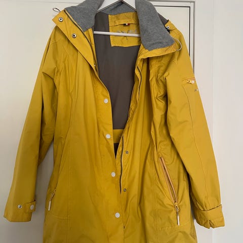 Jean Paul 1952 Annet yttertøy i gul farge, størrelse XL for kvinner. Jakken har glidelåslommer, i slitesterkt materiale og kvalitet. Ikke brukt.