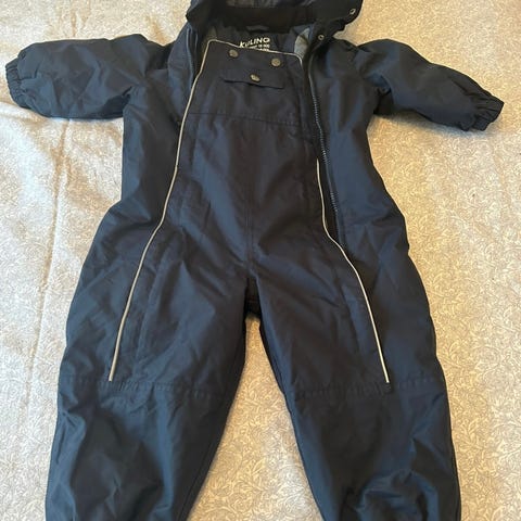 Varm vinterdress for barn, med gummibånd nederst som går rundt skaftet på skoen. Denne har aldri vært brukt, men den har ligget oppbevart en liten stund (dette har gjort at navnemerket har sprukket opp litt). Ellers ingen tegn til slitasje. Fra det danske merket Wheat.