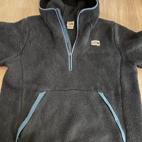 The North Face Fleecegenser for herre i størrelse XL (litt liten i str.), marineblå. Laget av mykt fleece-materiale som gir varme og komfort. Passer til bruk i kalde værforhold som et isolerende lag.