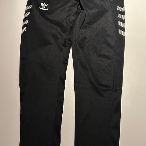 Hummel bukse i svart farge, størrelse 164 for barn. Laget av polyestermateriale med elastisk midje og stripemønster på bena. Passer til sportsaktiviteter som fotball og håndball eller som treningstøy i gym på skolen