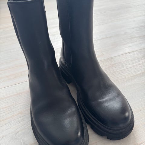 H&M støvler i størrelse 38 for dame. Støvlene er svarte med en robust og tykk såle. Helt ubrukte.
