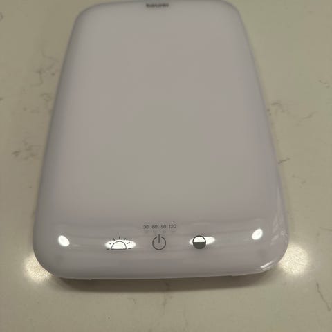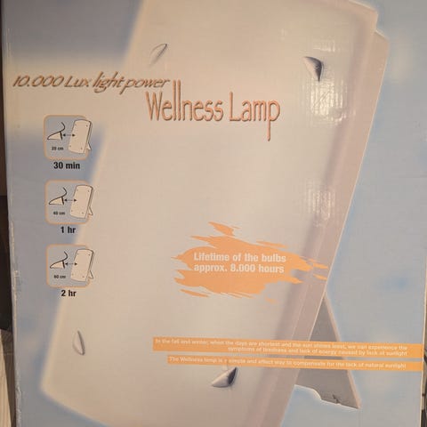Lysterapilampe som også kan benyttes til naturlig vekking med lys. Nypris: 1.900. Se bilde av kvittering. Full bruksanvisning medfølger.