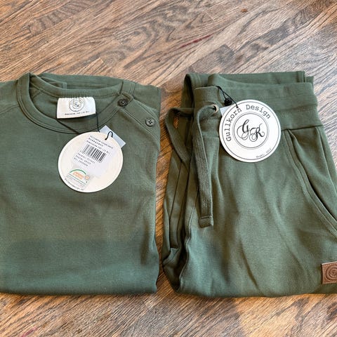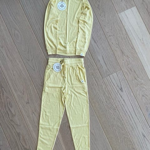 Meget pent brukt fleecesett fra Gullkorn Design str. 140 selges. Lyslilla med striper. Fra røyk-og dyrefritt hjem. Kan sendes mot at kjøper betaler frakt 😊