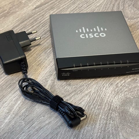 Cisco SG110D-08HP Ethernet-switch med 8 POE porter. Brukt to ganger. Original eske mangler, men den har fortsatt originalemballasje. Nesten ny stand. Veldig fin solid switch, men har stått ubrukt på lager.
