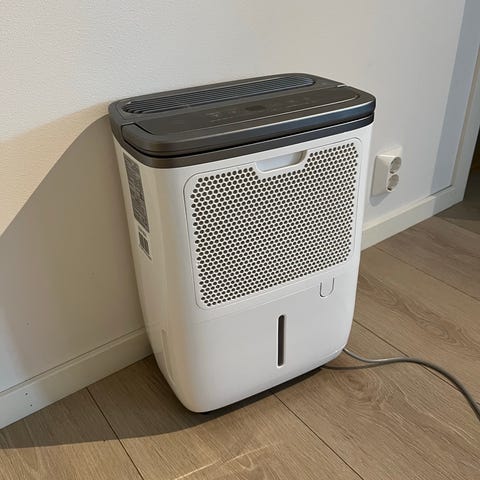 Luftavfukteren på 20 liter er enkel i bruk og har et display som viser rommets relative luftfuktighet.