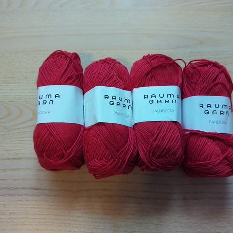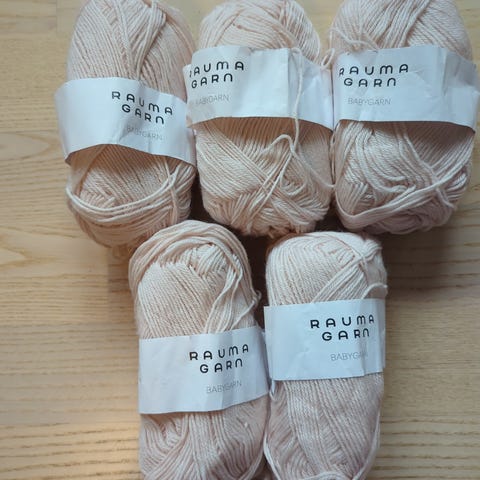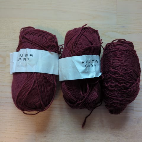 Rauma Garn Babygarn garn i vinrød farge. Produktet består av flere nøster egnet for strikking eller hekling. Garnet er mykt og beregnet for babyklær eller andre tekstilprosjekter som krever et mildt materiale.
