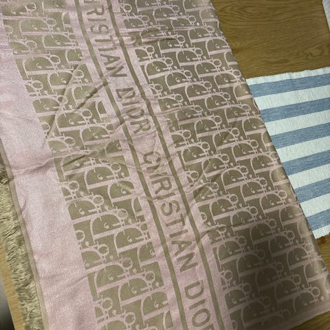 Pent skjerf i blå/beigetoner selges