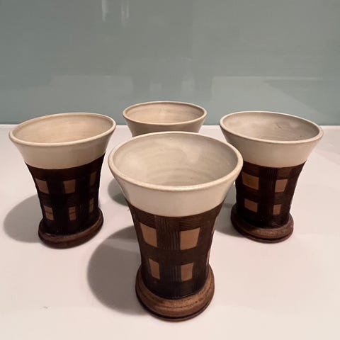 håndlaget keramikk fra danmark. 6 kaffekopper, 6 frokosttallerkner, 1 lysestake og 2 små fat. uten hakk og skår. tilsynelatende meget pent og lite brukt. pris kan diskuteres, sendes mot frakttillegg (pakkes godt inn!) 📦