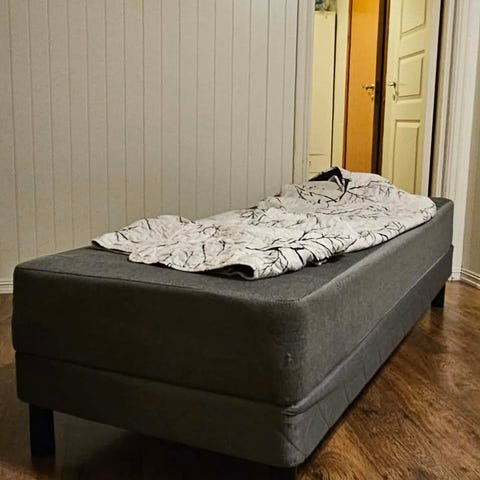 Seng 120 cm - solid og behagelig med nyvasket overmadrass😊