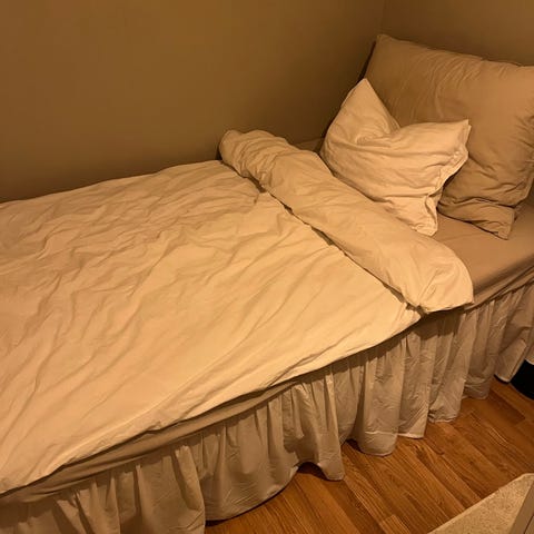 Selger denne sengen som i årenes løp har blitt brukt til gjesteseng og litt på barnerom. Da vi har ommøblert trenger vi den ikke lenger men håper andre kan få glede av den et sted😊