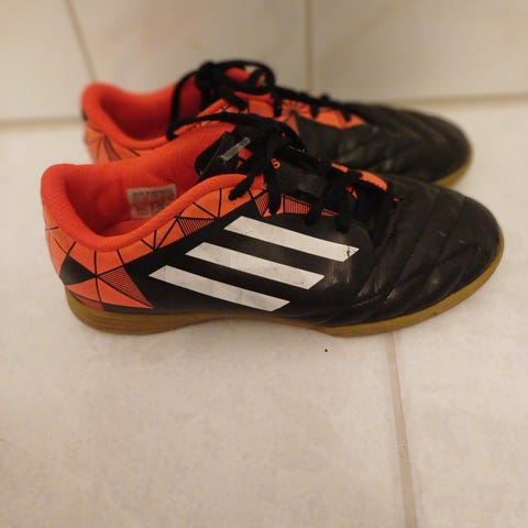 Pent brukte Puma innesko/håndballsko i størrelse 34. Farge rød/svart.