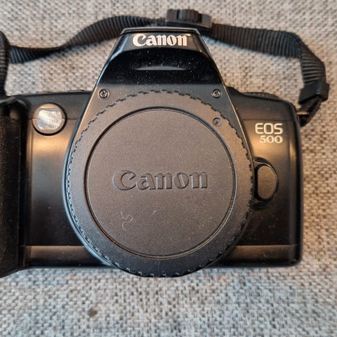 Canon EOS 5000 analogt speilreflekskamera med Canon zoomlinse 38-76 mm. Med reim og et litt slitent Minolta etui. Det har stått lagret uten batteri i og er helt i orden såvidt jeg vet. En billig inngangsport til retro kvalitetsbilder med 35 mm film - farger, svart/hvitt, lysbilder. Først introdusert i 1995, dette er knapt 30 år gammelt. Må hentes, sendes ikke.