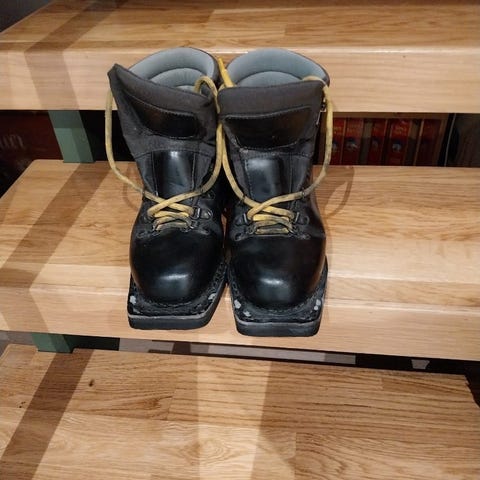 Alpina CL 10 langrennssko i størrelse 41, med mørk blå og hvit farge. Skoene har snøring og gummisåle. Egnet for langrenn og vinteraktivitet
