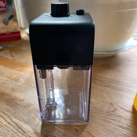 Selger en melkeskummer fra Nespresso. Nesten ikke brukt. Som på bilde så er det et lite hakk i lokket. Har ingen betydning for bruken.
