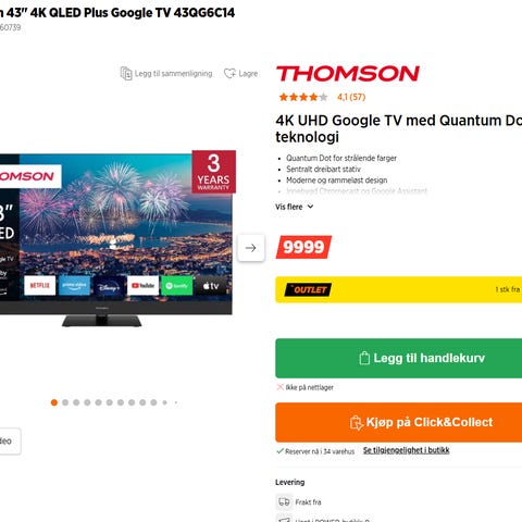Slank og pen 43 tommer 4K UHD TV selges grunnet endret behov. Kjøpt på Elkjøp i Januar 2025 - kvittering følger med.