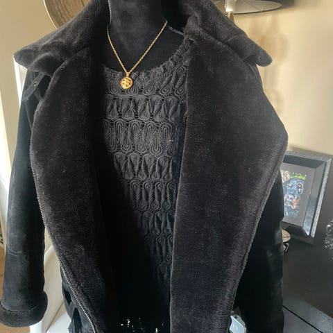 Culture fuskepels i størrelse 38 for kvinner. Jakken har flerfarget design med detaljer i pels og ulike teksturer. Egnet som en stilig jakke nå til partysesongen