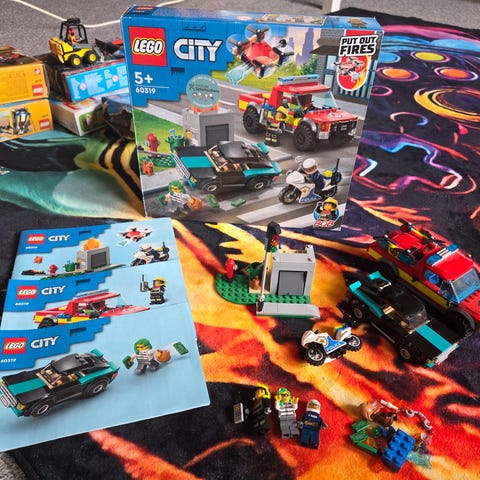 LEGO City 60214 brannvesen motorsykkel, hamburgersjappe og brannbil. 3 figurer.