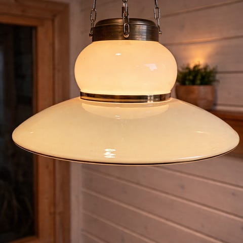 Vintage taklampe i glass og messing