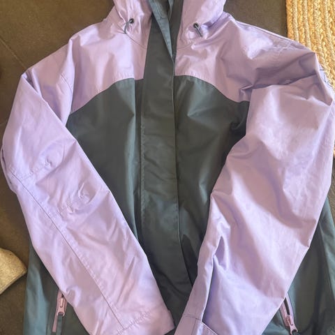 Flott Skogstad, vind og regnjakke. Veldig lite brukt. Ingen slitasje eller skader, men har litt merker etter vannsprut nede og bak på ryggen. Mulig d går av i vask. Str M