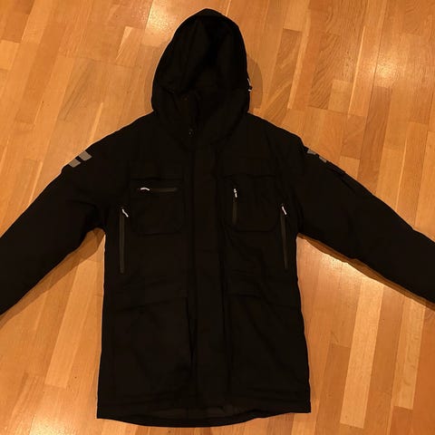 Svart Russeparkas fra Russedress.com som er som ny, veldig lite brukt, ingen slitasje eller skader, helt fin. Varm og god. Størrelse Medium.