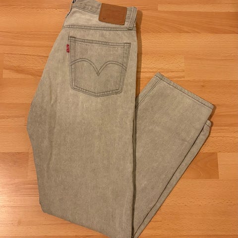 Levi’s high waisted mom jeans selges da den ikke lenger passer. Usikker på ben-lengde, men se mål på vedlagte bilder (innerben lengde 67,5 cm). Min datter som har brukt den er 1.66 høy.