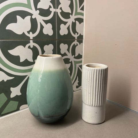 Alt er nytt med prislapp på. Fine små vaser og en veldig fin lysholder.