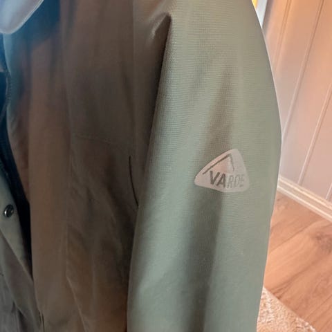 Deilig parkas/høst-og vårjakke fra det danske merket Junge, stor str 36, vid passform. Fargen er en blanding av brun og olivengrønn. Dobbel lukking med glidelås og knapper. Avtagbar hette. Varm og kul ytterjakke som tåler vind, regn og kulde.